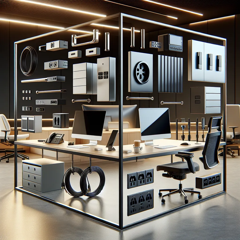 Nowoczesne wyposażenie biura: wsporniki, przepusty do kabli i akcesoria meblowe